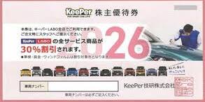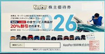 | KeePer技研 株主優待券20%,30% | 詳しくはこちら |