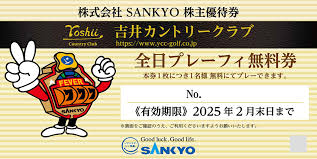 金券ショップトミンズHOME > 専門店、量販店その他商品券・株主優待券の高価買取>SANKYO株主優待券