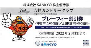 SANKYO 株主優待券 吉井カントリークラブ プレーフィー割引券 | 詳しくはこちら |