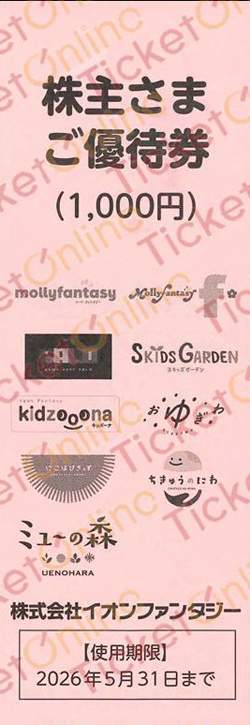 金券ショップトミンズHOME > スーパー株主優待券高価買取>イオンファンタジー 株主優待券